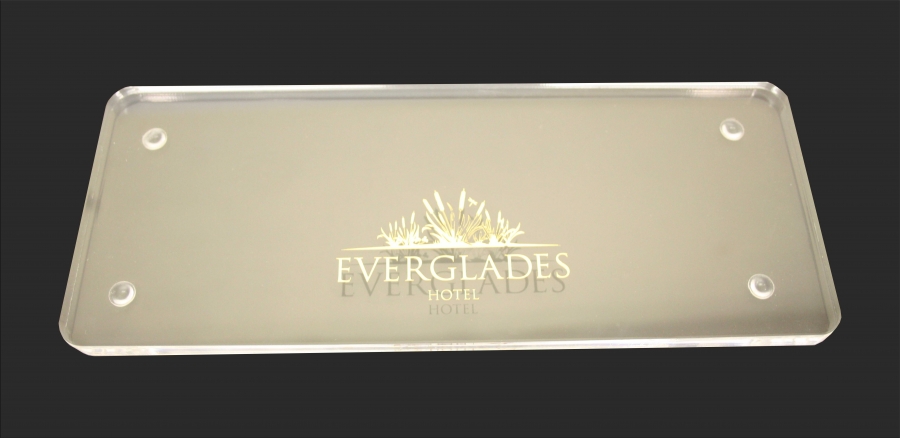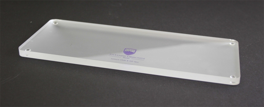 Carrick are now producing acylic amenity trays in house, as these are laser cut we can supply any shape or size with no set up costs. Personalisation can be either full colour digital print or laser engraved. Coloured acrylics can be supplied on request, for that finishing touch in your bathroom please enquire.