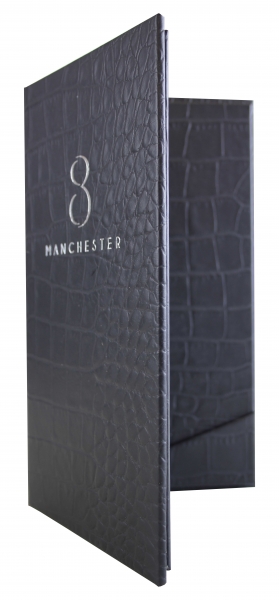 A wide selection of materials and finishes to choose from, from full colour digitally printed vinyl to our standard materials such as the Pelaq material to the TM cover style. All bill presenters can be made to either match your menus or compliment them,