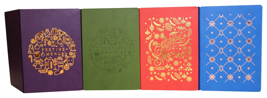 They are produced from a luxury Italian soft touch material that can either be hot foil blocked or have a blind embossed logo. they can also have a full colour printed logo.