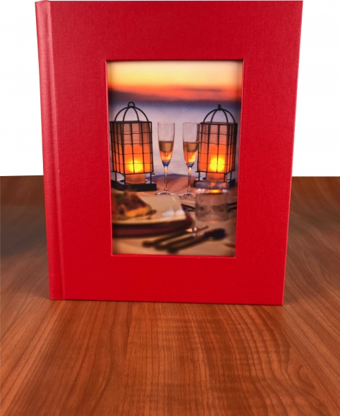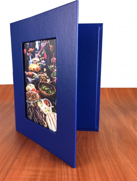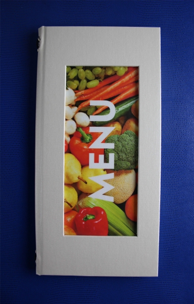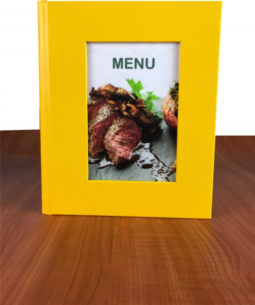 Why not add a 'picture frame' window to your menu covers. These covers can be made up in a wide range of materials and offer something slightly different.