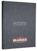 The Wood effect menu board gives the look of a real wood at a fraction of the price, with the choice of five colours to choose from and the option of a bonded leather finish on the corners to add that extra luxury feel.